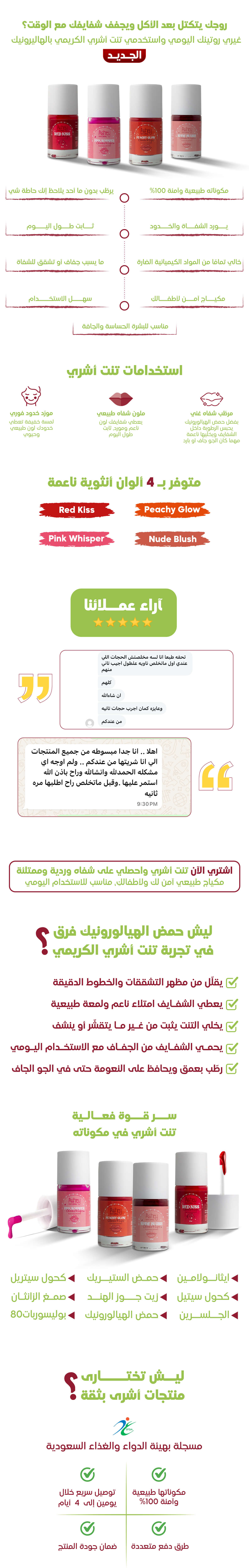 جربي تنت الشفاه والخدود بتركيبته الغنية بخلاصة الصبار والورد، وتمتعي بلون ثابت وترطيب عميق، آمن للبشرة الحساسة وللأطفال من عمر سنتين.